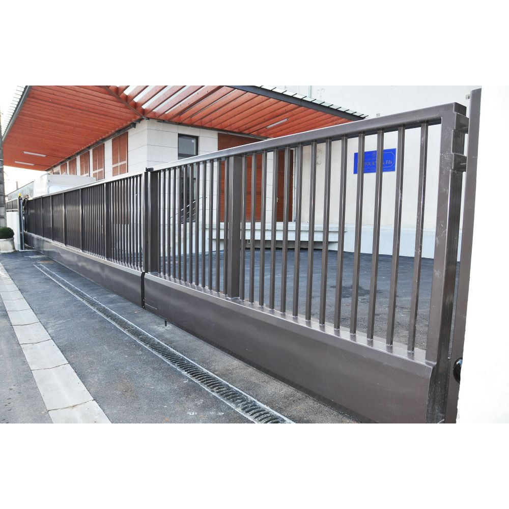 Remplissage: 25 x 25 - 1,5mm pour une hauteur 30 x 30 - 1,5mm pour une hauteur ≥ 2m50 Accessoires: Montures à galets reglable Serrure inoxydable canon Européen Traitements: ; grenaillage + époxy zinc 80μ + thermolaquage polyester 80μ ou galvanisation à chaud + thermolaquage polyester 80 µ