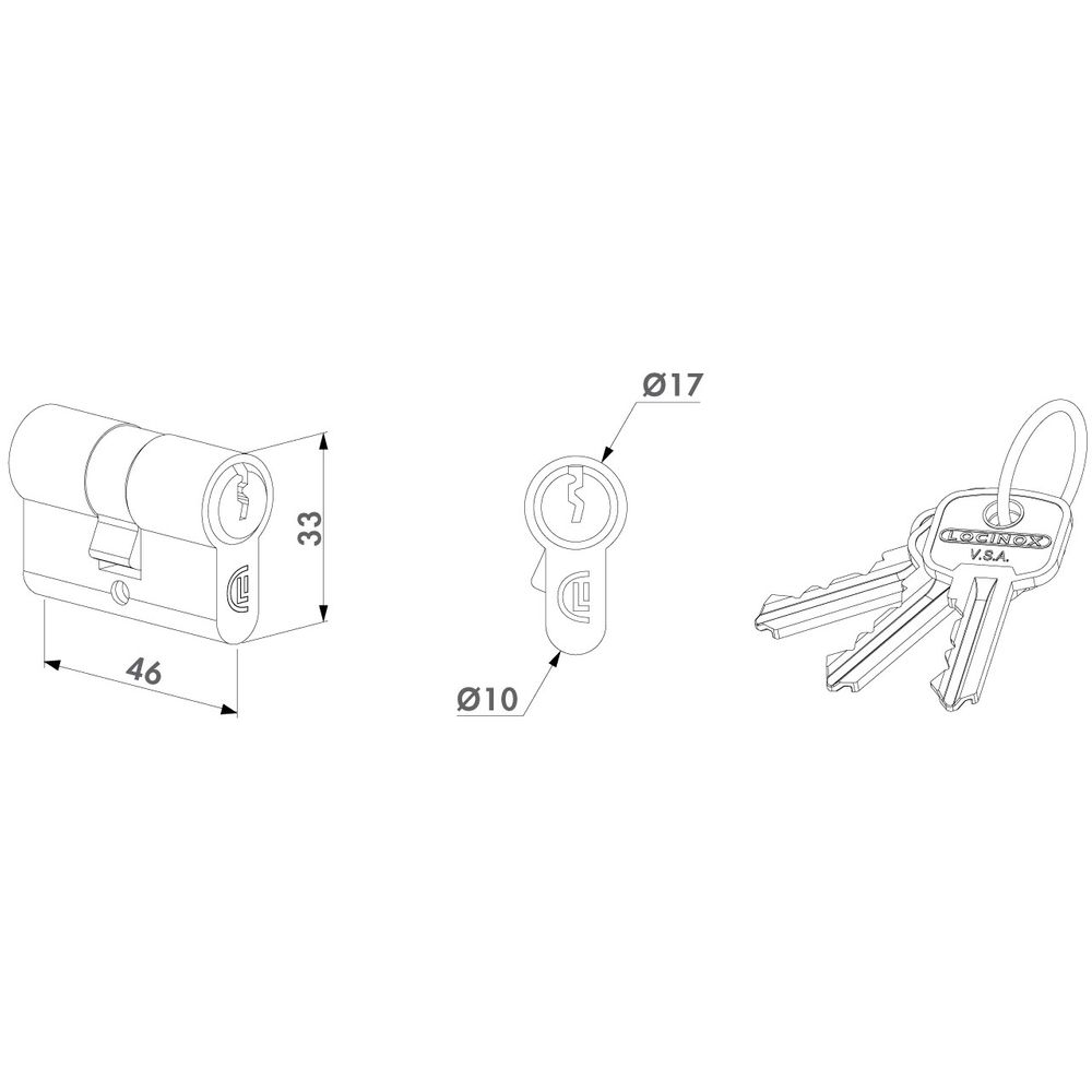 Cylindre européen symétrique 23 - 23 mm. s'entrouvant A