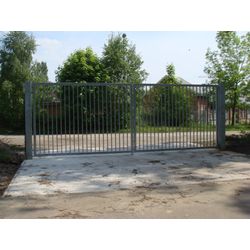 Remplissage: 25 x 25 - 1,5mm pour une hauteur 30 x 30 - 1,5mm pour une hauteur ≥ 2m50 Accessoires: Gonds réglables M16 à M30 suivant largeur Serrure inoxydable canon Européen Butée centrale et verrouillage en position ouverte et fermée Traitements: grenaillage + époxy zinc 80μ + thermolaquage polyester 80μ ou galvanisation à chaud + thermolaquage polyester 80 µ |