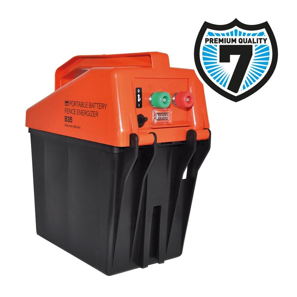 Nieuw, voordelig batterij- apparaat voor korte afrasteringen tot 4km (zonder begroeiing). Zeer eenvoudig te bedienen. Werkt zowel op een 9V batterij als op een 12V accu. Het apparaat waarschuwt als de batterij of accu bijna leeg is. Exclusief aardpen en batterij.