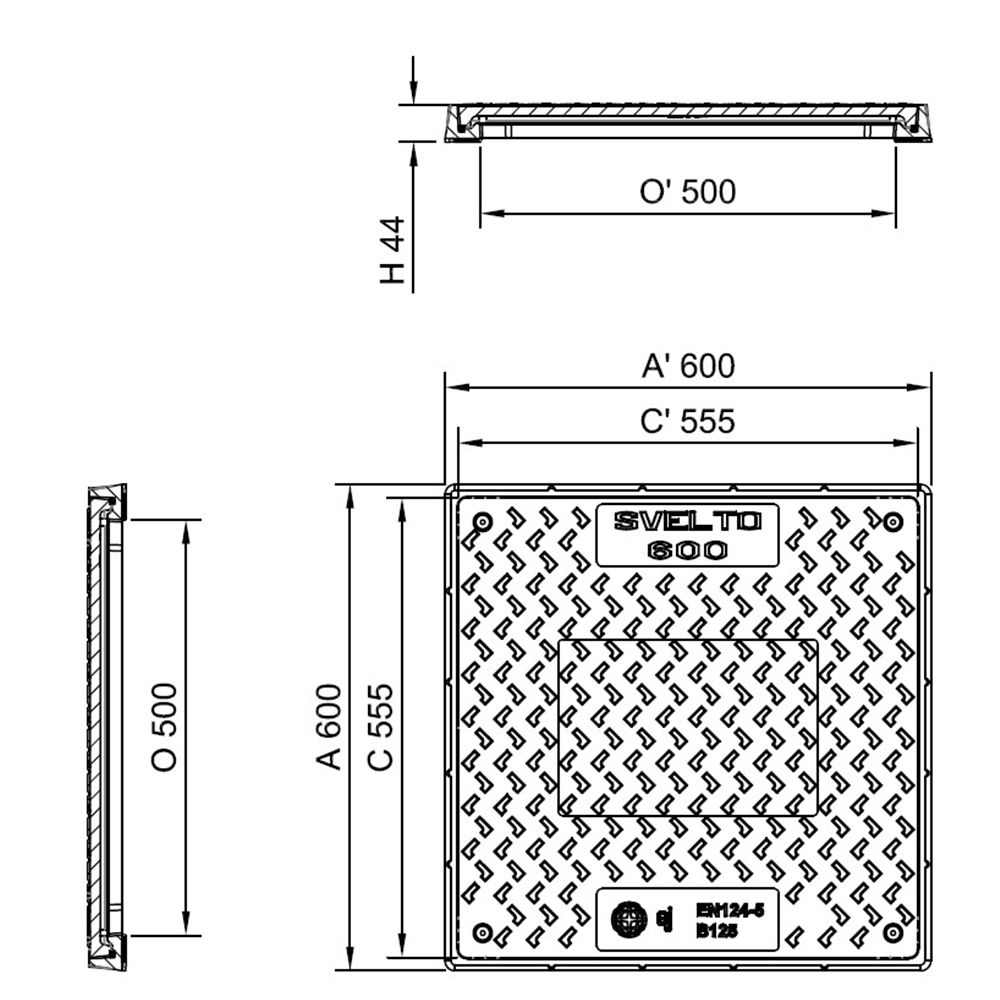 SVELTO PLUS KM=590X590 VO=500X500 B125 44MM